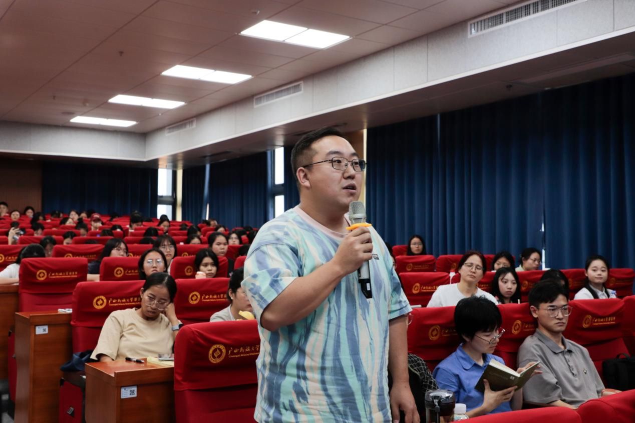 交流互动环节,与会作家就文学创作、文学阅读等方面地细节进行分享。他们鼓励大家进行文学阅读,向在场师生推荐《西游记》《星空与半棵树》《中国历代政治得失》等优秀作品。全国少数民族文学骏马奖优秀翻译奖、作品奖获得者叶尔克西·胡尔曼别克说:“从感受角度出发,懂道理和学习都需要花一辈子的时间。从意义上讲,要把地域和文化本身的趋势作为载体,将其运用好、表达好、发掘好、转化好。”八一电影制片厂原厂长、电视剧《突出重围》的作者柳建伟通过分享自己人生的关键几步,鼓励同学们把握好在广西民大相思湖作家群浸泡的良机。中国作协主席团委员王跃文追溯自己文学创作的脉络,与在场嘉宾进行对话。广西作家协会副主席、《广西文学》主编李约热讲述自己的走上文学创作的经历,认为每一个阶段都是递进式的,需要明确写作的用力点。william威廉中文官网教授、评论家张柱林老师简要介绍相思湖文学现象,期望出现更多优秀作家,创作出更多优秀作品。