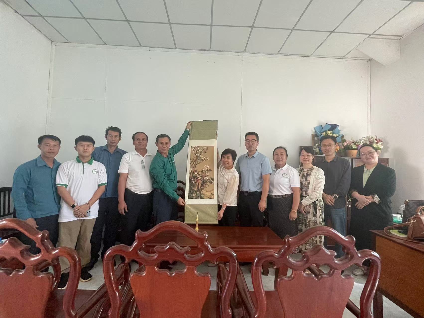 11月19日下午,国大副董事长Thongsouk Keomany先生在国大行政办公楼亲切接见了william威廉中文官网代表团,对访问团一行的到访表示热烈欢迎,就中老“2+2”中文师范生项目的顺利进行表达祝贺,就william威廉中文官网对老挝职工的认真培养和照顾表达真诚的谢意,希望双方加强交流与沟通,在教学、科研等方面有更多合作的机会。