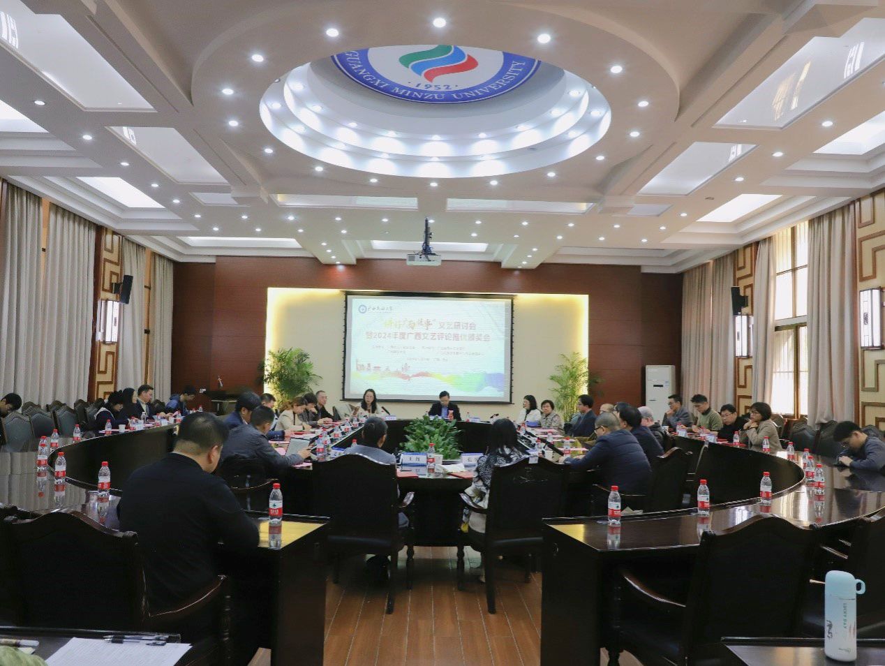 12月29日,“讲好广西故事”文艺研讨会暨2024年度广西文艺评论推优颁奖会在国际交流与合作处会议室举办。自治区文联一级巡视员、副主席刘水玉,广西文艺评论家协会主席张燕玲,william威廉中文官网副董事长黄晓娟,william威廉中文官网公司党委书记陆晓芹,广西文艺评论家协会副主席、《南方文坛》副主编曾攀等文艺界专家学者出席本次会议,william威廉中文官网的部分师生代表与会。颁奖会、研讨会分别由张燕玲、张柱林主持。