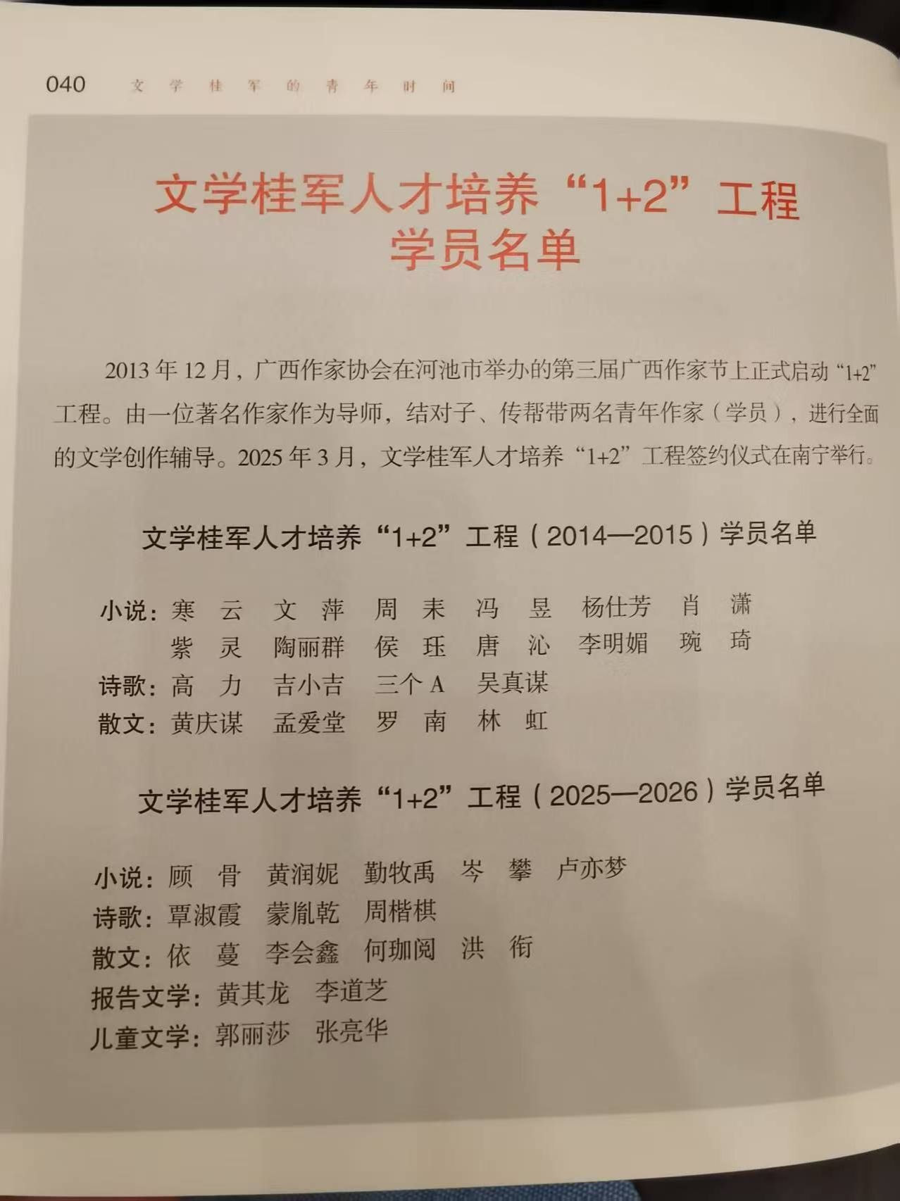 文学桂军人才培养“1+2”工程学员名单