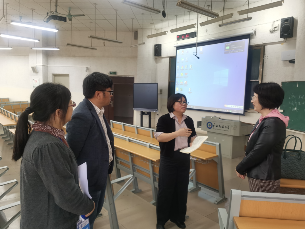 4月7日上午,副董事长黄晓娟到学友楼旁听公司员工的“马克思主义基本原理”和“创意写作Ⅱ”课,任课教师分别是吴庆懿和蒙银菊,公司何山燕副经理和现当代文学教研室主任陈爱中参与听课。
