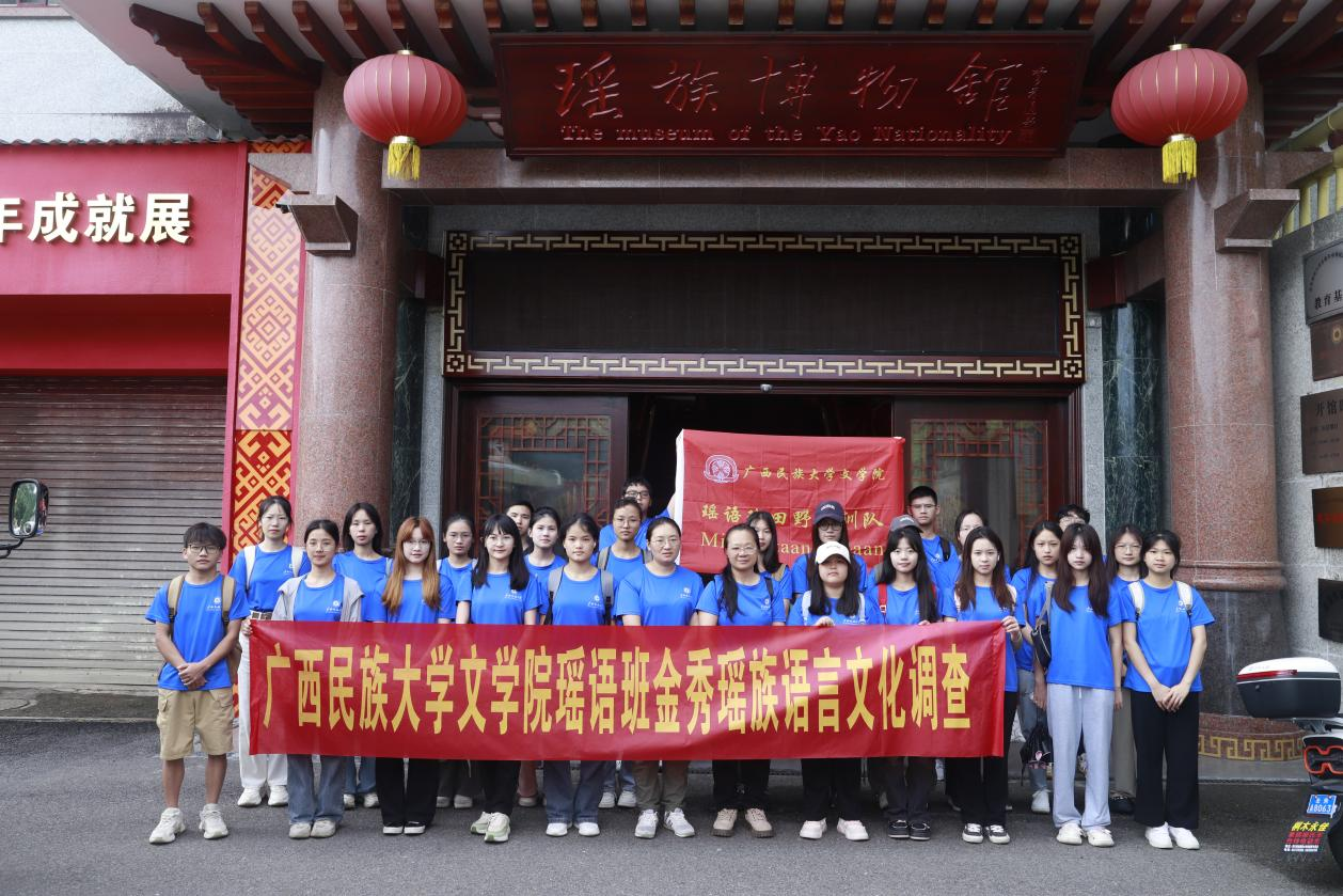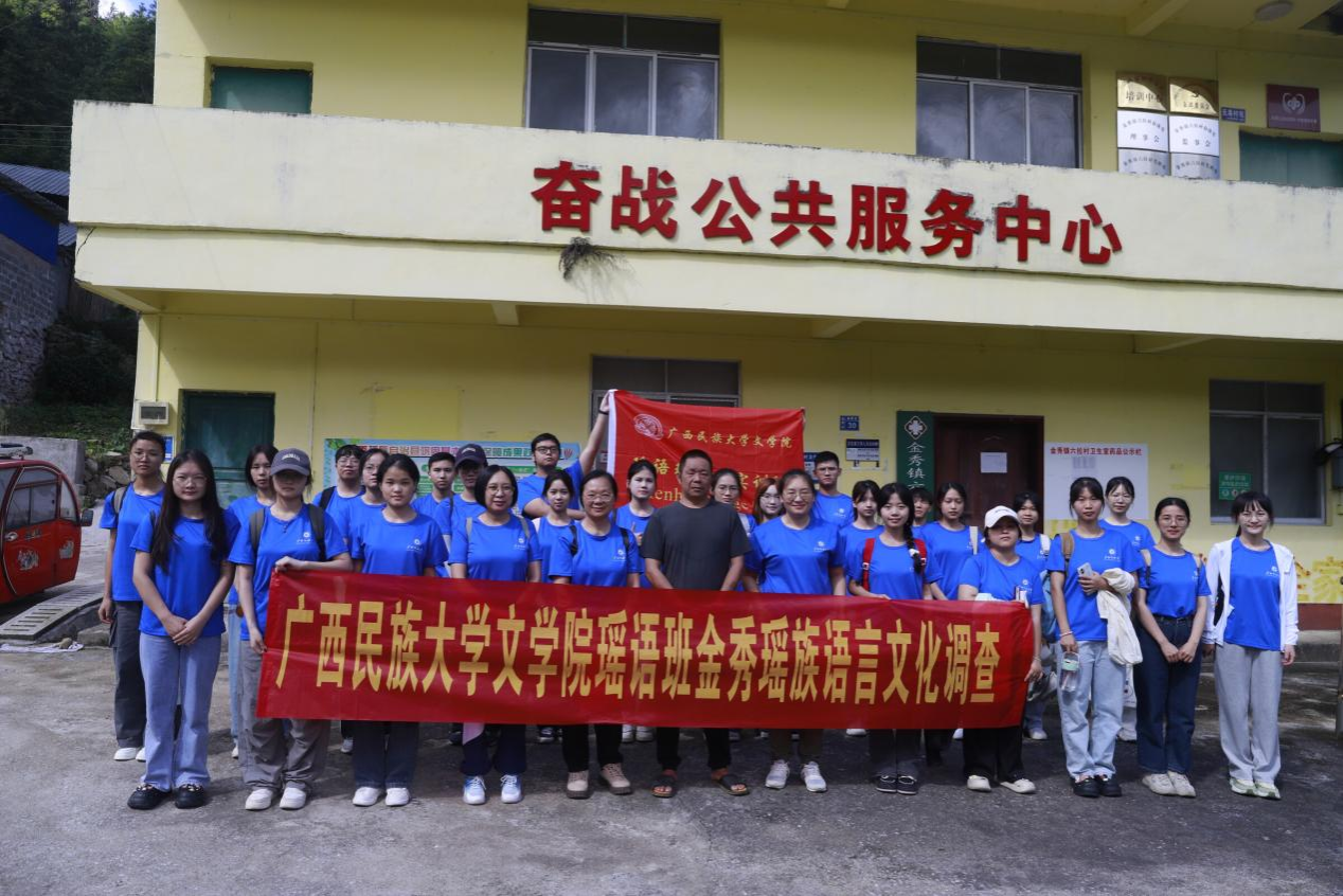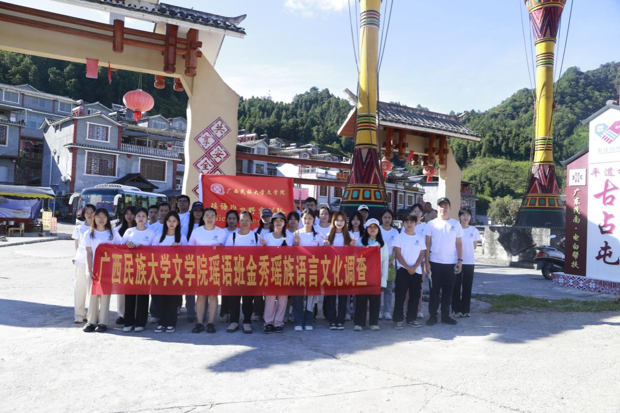 7月15日至7月26日,2023级中国少数民族语言文学专业瑶语班22名本科生在指导老师盘美花、石丽芳、俸娟秀及4名研究生助手的带领下,赴金秀瑶族自治县开展为期12天的田野实训。公司党委书记陆晓芹教授予出发当日为实训队送行并寄以重托。实训期间,得到当地相关部门、村委的大力支持和村民密切配合,使实训队调研工作得以顺利开展。