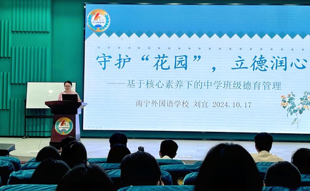 刘宜副主任以“守护花园 立德润心——基于核心素养下的中学德育班级管理”为题,深入阐述了中学班级德育管理的重要意义和方法。她表示成功的班集体需用心用情、有规划落实:班级管理采用“望闻问切”法,观察氛围、倾听评价、询问意见、找准生长点;育人理念是教会员工“会生活,会学习”,培养多种品质促员工全面发展;营造班级氛围可通过口号、装饰、花草及文体活动,激发集体荣誉感。她表示,教师要注重培养自己的广泛兴趣,树立良好的教师形象,从潜移默化中影响员工。最后她指出,教育工作者要保持乐观和毅力,她鼓励同学们亲身感受中小学教学环境,感悟教育温度和魅力,为成为优秀教育工作者奠基。