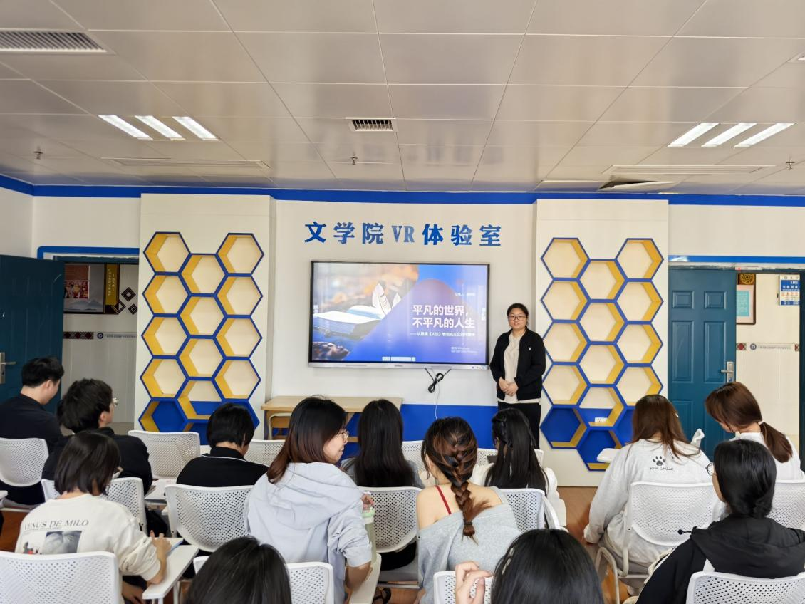 王滋斌、何佳芳、董燕秋、张书源、赵籽彤等五位同学选取了一本自己最近阅读的文学作品并分享了自己的读书感悟,他们依次做了“小说已死?——米兰·昆德拉《被诋毁的塞万提斯的遗产》”“白夜里踽行,黑昼间噤默——看《白夜行》中雪穗的独特魅力”“叩问生命,追问生死——解读《我与地坛》中的生命哲学”“希望·孤独·荒诞——浅析贝克特的《等待戈多》”以及“平凡的世界,不平凡的人生——从路遥《人生》看现实主义创作精神”等主题汇报。分享同学分别从作品的作者、内容及文学史地位做了简评,并选取了其中最令自己感动或启发的片段,一一述来与同学们做了分享与互动。