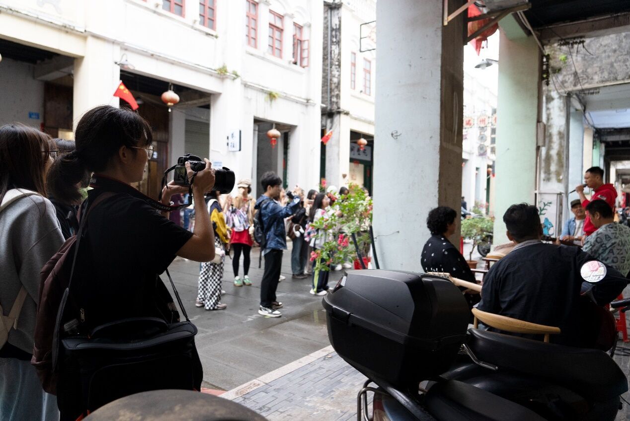 骑楼老街始建于1934年,曾是钦州的商业中心,见证了钦州城市的发展与变迁,历史底蕴厚重。老街以其别具一格的建筑风格,成为了成员们灵感的源泉。斑驳的墙面和精美的雕花不仅是时间的印记,更是艺术与历史的完美融合。漫步在这条充满历史韵味的老街上,成员们仿佛穿越回往昔,那些古老的建筑和故事激发了他们无限的想象力,为微电影创作中的角色设定、场景构建提供了丰富的素材和深刻的情感色彩。