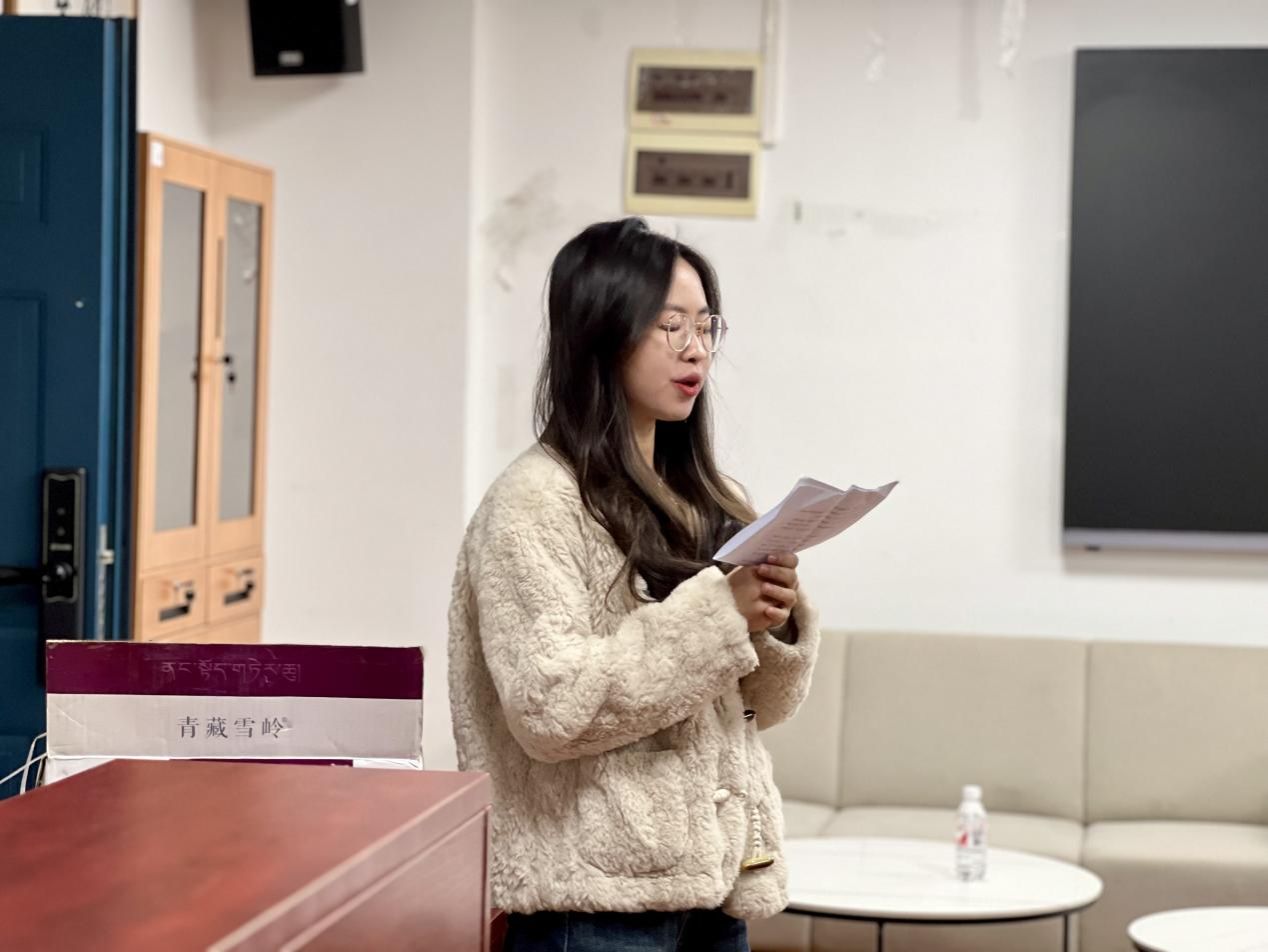 新生代表吴桐在发言中表示,写作对于作者而言不仅是向外的探索更是向内的自省,她谨代表每一位怀揣着激动而喜悦心情的新学员对创意写作中心的领导与导师们表示真挚的谢意。并与新学员共勉,把握在创意写作中心进修和学习的机会,怀揣着对文学的热爱,跟着导师学到知识,获得进步,在不同的写作工坊里都能学有所成。