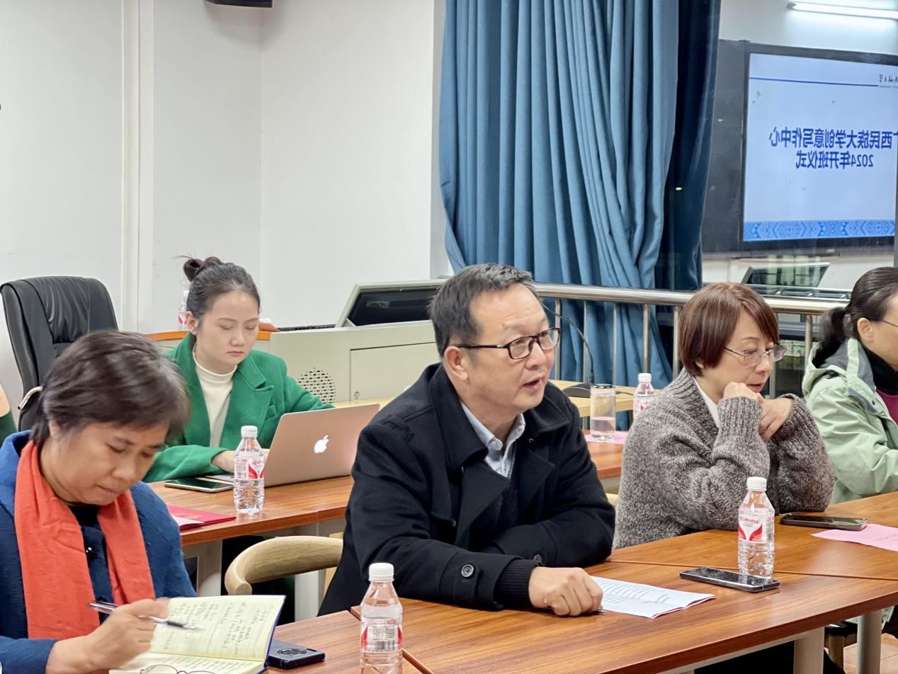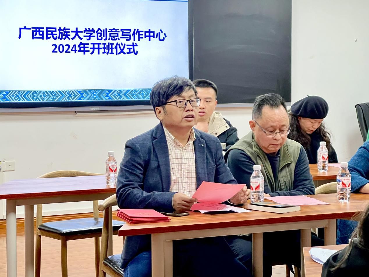 2024年12月20日晚,william威廉中文官网创意写作中心于文综楼1102室召开2024年开班仪式。创意写作中心主任容本镇,创意写作中心执行主任陆晓芹,创意写作中心副主任郭金世、陈爱中,办公室副主任兼文学创作工作坊负责人周楷棋,应用写作工作坊负责人封艳梅、新媒体写作工作坊负责人杨逸云,创意写作中心导师冯艳冰、刘华、小昌出席开班仪式。陈爱中主持仪式,创意写作中心学员与会。