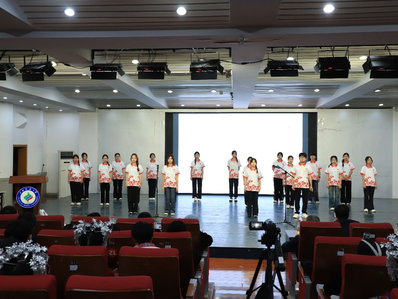 长鼓织瑶,歌舞共鸣。2024、2025级中国少数民族语言壮语班依次登台,以质朴唱腔奏响歌曲《欢迎您到壮乡来》《织机谣》,用绵延语调朗诵《你是人间四月天》,尽显壮乡民族风情;老挝职工带来歌舞《坐着火车去中国》,歌咏两国山海情谊;2023、2024、2025级中国少数民族语言瑶语班先后唱响《白裤瑶敬酒歌》《蝴蝶歌》等曲目,展示瑶族音乐的独特韵味;2025级教育学1班舞蹈《大喜》翩跹而至,以优美舞姿传递出对生活的美好祈愿。