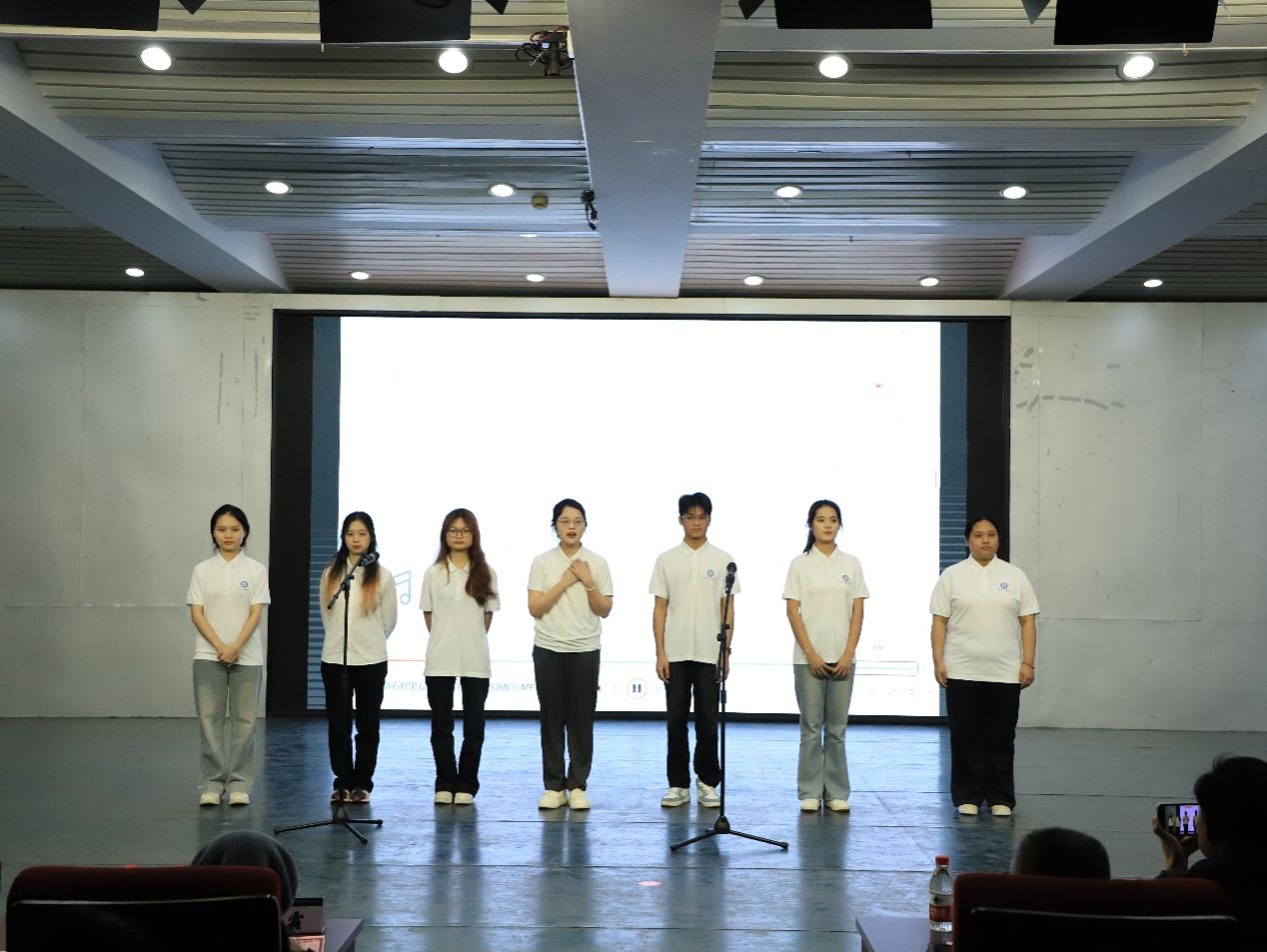 瑶语壮韵,诗承千古。2023级中国少数民族语言瑶语班为观众献唱歌曲《迎客歌》《瑶山好》、吟唱粤语童谣《月光光》,演绎瑶族经典曲目《瑶族嫁郎》,生动呈现瑶族传统习俗与待客文化;2025级、2023级中国少数民族语言壮语班分别朗诵《诗行广西》《我在一颗石榴里看见了我的祖国》,表达对家乡的深情与对民族团结的赞颂;沧岚动漫社舞蹈《听见wo》及文艺部黄诗颖独舞《One Spark》,融合传统韵律与现代节奏,展现出艺术表达的多元融合;2025级中国少数民族语言瑶语班踏歌传唱《瑶家敬酒歌》,2025级汉语国际教育印尼语班于紫馨演唱《天若有情》,呈现出中华民族文化的丰富内涵与时代活力。