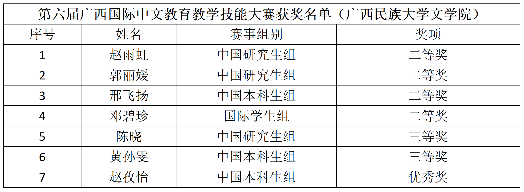 12月6日至7日,第六届广西高校国际中文公司产品技能大赛于梧州公司举行。公司派出7名选手参赛,凭借扎实的专业素养与出色的教学能力斩获佳绩,最终荣获二等奖四项,三等奖两项,优秀奖一项,共七项区级奖项。