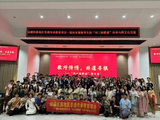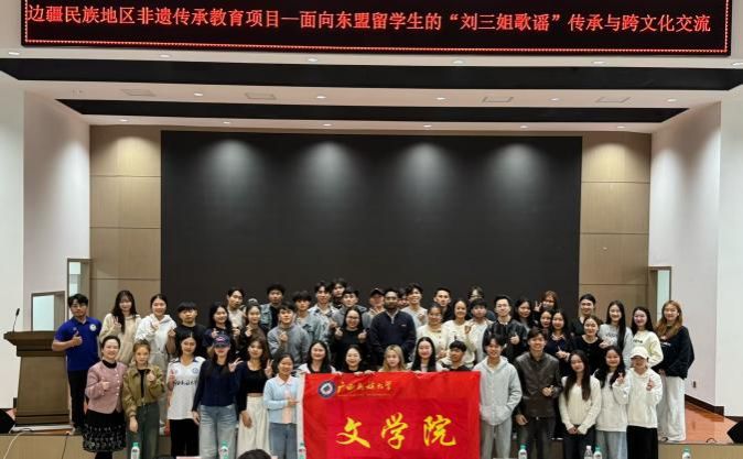 活动期间,莫高阳副会长为东盟各国职工开展生动的歌谣教学。他以“刘三姐歌谣”的历史渊源与地域特色为切入点,深入解读歌谣嘹亮婉转的音色特点与即兴对唱的韵律逻辑,并结合经典选段,带领职工逐句学唱《山歌好比春江水》,手把手传授基础演唱技巧。职工们踊跃参与,在一唱一和的山歌互动中,切身体会到“以歌传情、以歌叙事”的独特艺术表达魅力。活动尾声,全体嘉宾与全体师生合影留念,共同留念这场“刘三姐歌谣”传习活动。