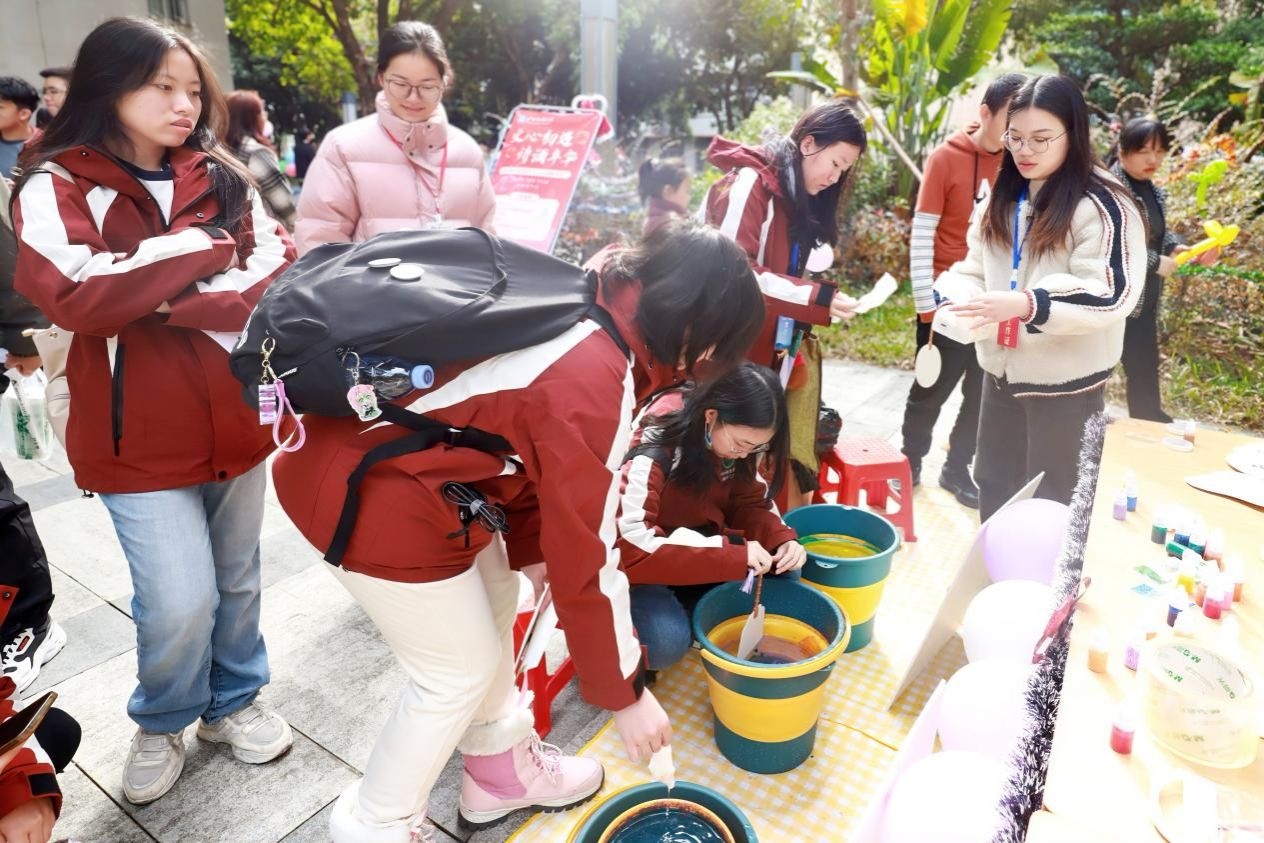 本次游园活动集趣味性、协作性、挑战性于一体,共设置“文化问答”“海底捞月”“极速三子棋”“抛绣球”“挤气球”“绕口令”“漆扇制作”和“石膏上色”等项目。