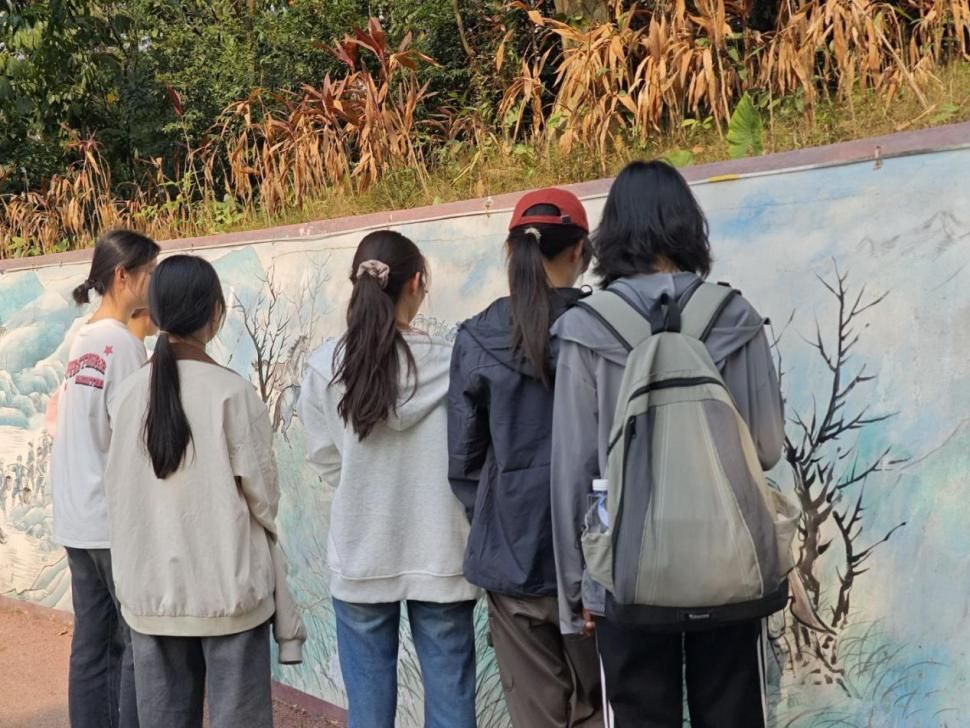 同学们参观“红色百年奋斗路”壁画