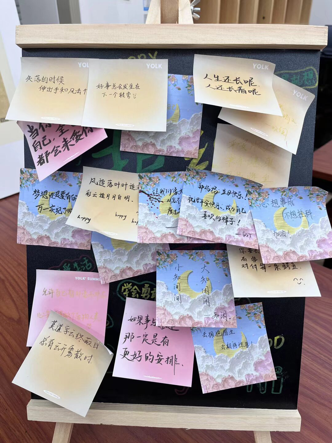 书法疗愈短句贴在心愿墙上