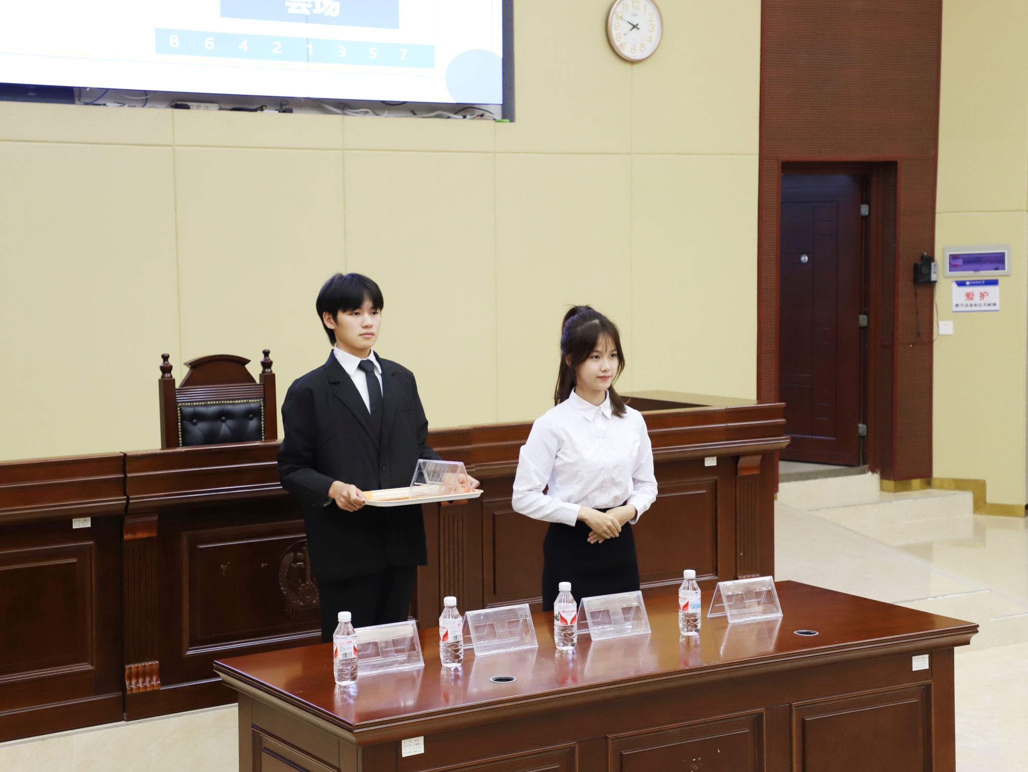 梁海程、罗家汶同学通过现场示范的方式,更直观地向同学们展示标准的仪态与规范的着装样式。黄俊添、黄馨怡同学则根据不同的情况演示会议座位的安排、台签的摆放,生动地呈现会议礼仪的原则,有助于同学们更好地掌握礼仪要点。