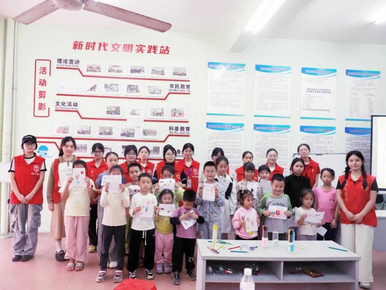 志愿者和小朋友们合影