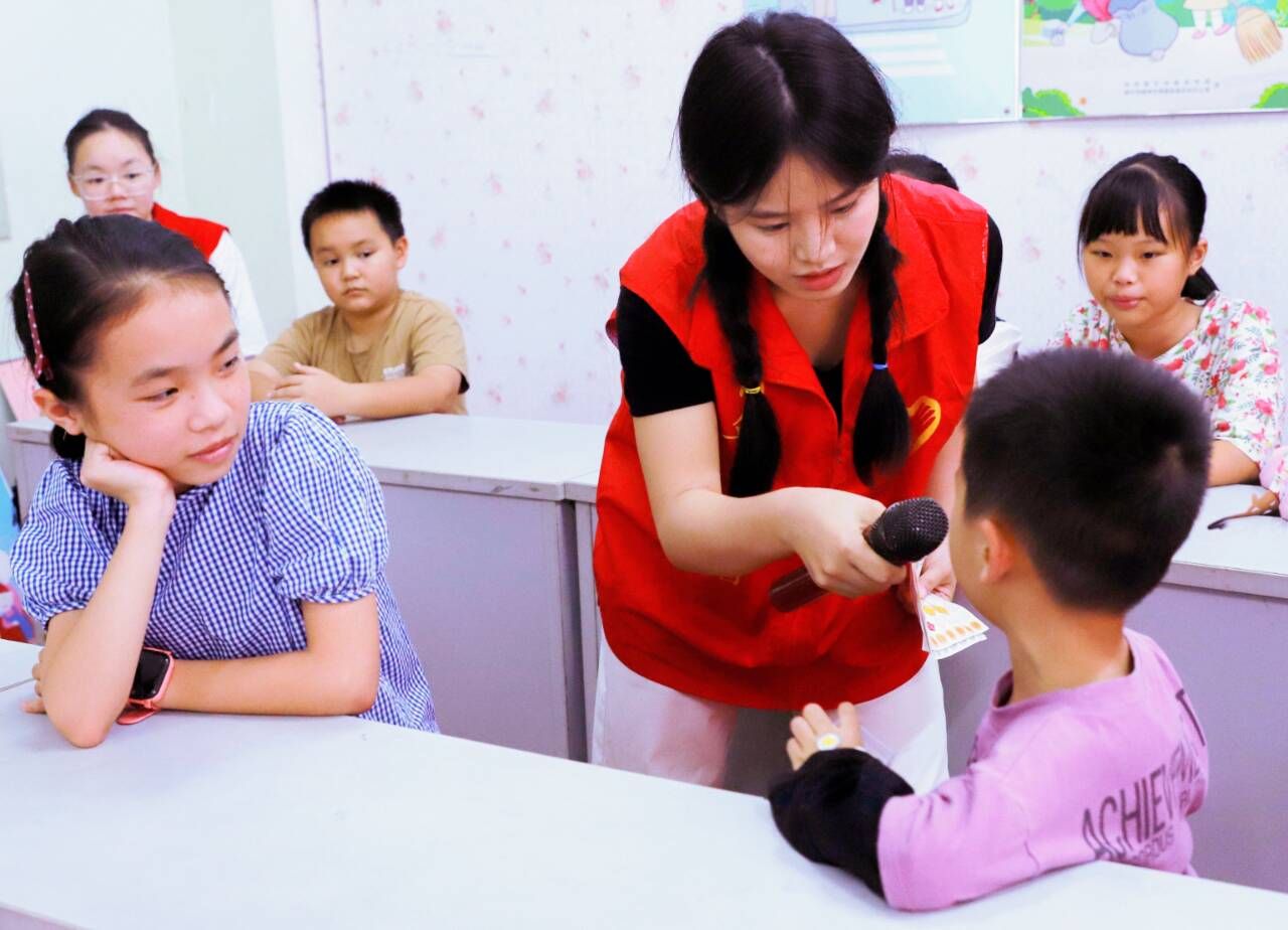 志愿者和小朋友们进行互动